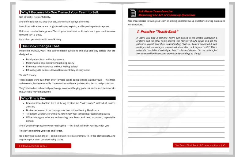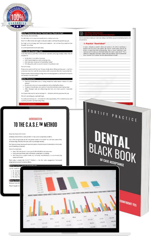 The Dental Black Book of Case Acceptance gives your team the exact words, scripts, and framework to turn hesitation into a confident "Yes" without feeling like a pushy sales person.