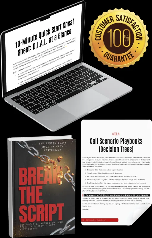 This add-on gives you the exact D.I.A.L. Method™ used to convert more phone leads into booked appointments — so you can fill your schedule with qualified patients before they ever step in the door.